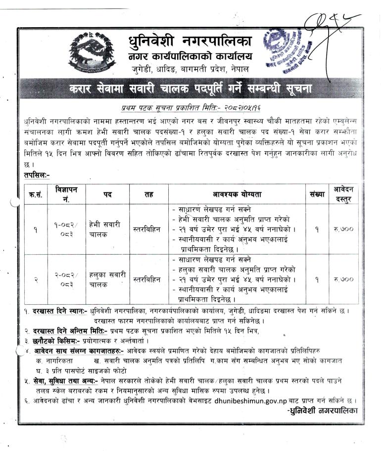 करार सेवामा सवारी चालक पदपूर्ति गर्ने सम्बन्धी सूचना