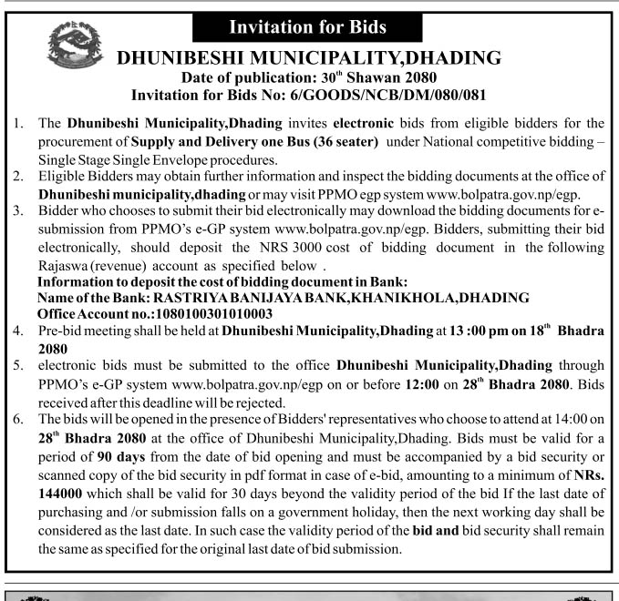 Home » बस खरिद सम्वन्धी वोलपत्र आव्हानको सूचना