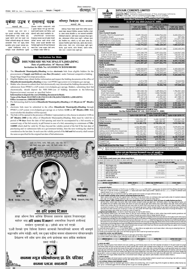 सार्वजनिक खरिद/बोलपत्र सूचना