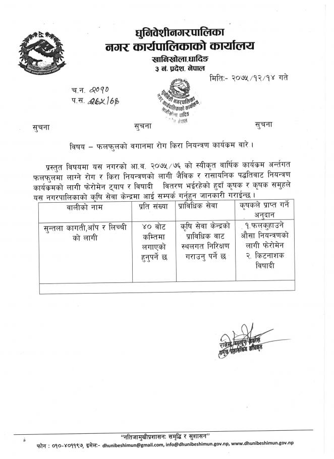 यस धुनिवेशी नगरपालिकाको कृषि शाखाको सूचना