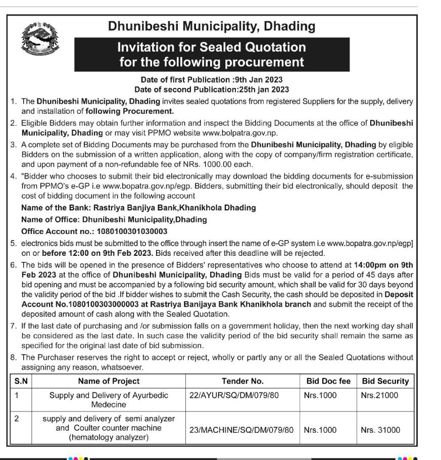 सार्वजनिक खरिद/बोलपत्र सूचना