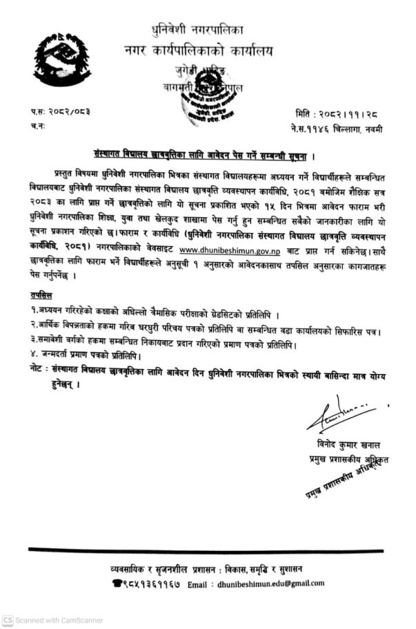 Home » संस्थागत विद्यालय छात्रवृत्तिका लागि आवेदन पेश गर्ने सम्वन्धी सूचना